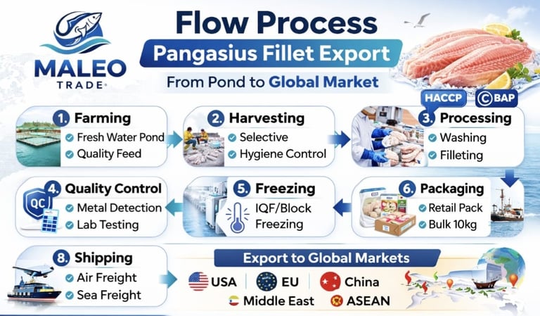 Maleo Trading connects global markets with responsibly sourced seafood and food products from Indonesia. We specialize in export-ready frozen fish, agricultural goods, and processed foods, built on traceable supply chains and reliable partnerships.